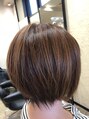 ミニボブ 切りっぱなし ブリーチ ハイライト 白髪ぼかし