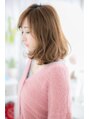 大人かわいい好感度大のモテセミディ。あご下のくびれカールがキュッと輪郭を引き締めて小顔に見せます。サイドに流した斜めバングで目力強調。上目遣いが似合う甘え顔に仕上げます。ベージュカラーやグラデーションカラーで顔周りを明るく華やかに♪