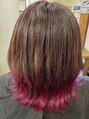 カラーは毛先をブリーチして上からカラーバターでピンクを。根元は白髪を染めながらプラムピンクを入れました☆カットは長めのパッつんボブ!毛先のボリュームを減らさないようにフレンチカットグランデ根元からできるだけ量を減らして毛量調節しました!