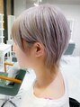 前髪薄めのハンサムショートで女性らしさとこなれ感を。メリハリのあるフォルムにする事で小顔に。頭の形を綺麗に見せれます。カラーは柔らかさをだすためブリーチデザインカラー で透明感カラーに!!