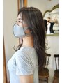 王道のロングレイヤー、インナーカラーでパープルが入っています。色が抜けてくるのが早いので、濃いめに入れていますが、抜けてくると、ミルクティーベージュのような感じになります。