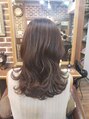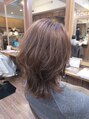 夏の紫外線でオレンジに傾いたカラーを【アディクシーカラー】にてこっくりスモーキーブラウンにシフトしました。毛先だけやんわりと巻いてオイルを馴染ませます。残暑から秋にかけてやわらかミディアムヘアをご提案いたします