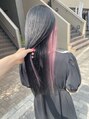 ハイトーンベースから黒染め無しのファッションカラーで一番暗いお色にしてインナーにピンクを残してみました、可愛い