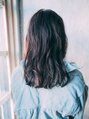 バングは薄めにし軽く分けた鎖骨下ミディアムスタイル。バングはしっかりめにカールを付けてクールな印象に!全体は大きめのコテでウェーブ状に仕上げています。バングなしの方はサイドパートなどにしてあげると大人っぽい印象に。