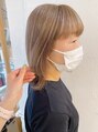 切りっぱなしボブにダブルバングの姫カット。くすみのないハイトーンのベージュが凄く可愛いヘアスタイルです。
