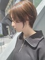 大人かわいい前下がりのハンサムショートはシャープに切った毛先のライン、襟足をしめてスッキリ見せたりと、メリハリを効かせて絶妙なバランスに!カラーはキャラメルベージュで今からの季節にオススメの大人見えに! 秋冬のイメチェン楽しみませんか?