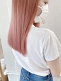 ハイトーンのくすみサーモンピンクで艶ハイトーンカラーをでかわいいモテヘア。