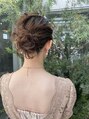 肩につくかつかないかくらいの方でもふわふわにセットできます。披露宴と二次会どちらにも参加できるような少しラフだけど華やかに見えるアップスタイルです。