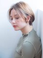 ポイントはカラーで,メリハリを出すために内側のもみあげ~襟足は暗めに、表面にはたっぷりハイライトを入れて立体的な仕上がりに。