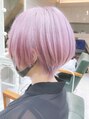 前髪薄めのハンサムショートで女性らしさとこなれ感を。メリハリのあるフォルムにする事で小顔に。頭の形を綺麗に見せれます。カラーは柔らかさをだすためブリーチデザインカラー で透明感カラーに!!