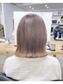 1ブリーチでつくる、くすみのあるミルクティー。色落ちが綺麗になるようにパープルもミックスしています。ブリーチ無しでは出せない透明感が出るので、特に女性に人気のカラーです。