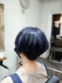 ショートスタイルのアウターカラー!トップ~ミドルセクションをブリーチオンカラー!深みのあるディープブルーで!