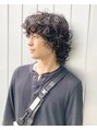 men's hair お客様スナップ。ウルフに無造作にパーマをかけたスタイルです。縛ってもおしゃれなこのスタイルは濡らしてスタイリング剤をつけるだけで簡単に決まります^^