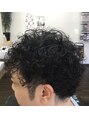 横後ろは短く刈り、トップは細いロッドでパーマを巻きハードなイメージに仕上げてみました。