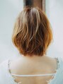 柔らかい髪質におすすめの甘めなボブスタイルです。カラーリングも少し明るめオレンジベージュ系で質感をやわらかく、さらに毛先だけカールをつけてふんわりするようにスタイリングしています。[笹塚]