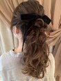 ポニーテール ベロアリボン 波ウェーブ 花嫁 結婚式 二次会/ホットペッパービューティー