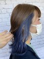表面はアッシュで明るくしてインナーはブリーチしてブルーをいれました(*^^*)