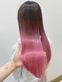 毛先のブリーチ部分はケアブリーチでケアをしながらハイトーンに作っているので艶々ヘアをキープしてピンクアッシュをデザインしています!