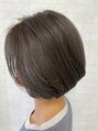 前下がりのショートボブスタイルです。全体にハイライトが入っていて、アッシュグレーに染めました。赤味が出やすい方におすすめのカラーです。