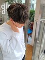 ハイライトカラーでお洒落感をプラスしたマッシュスタイル。パーマはラフに無造作な感じを狙って、ゆるめにかけてます。くしゃっとした動きで人気の高いスタイルです。