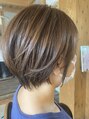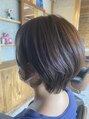 愛らしい丸みシルエットのショート。前髪は少し軽めにつくり、そこからサイドにナチュラルにつなげてカット。顔周りの毛束を長めに残し、包み込むようにカールづけて。明るめのベージュ系が肌を綺麗に見せる効果も。