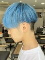 cut---やや前下がりのマッシュショートスタイル。乾かすだけである程度の形にはなります♪color---ブリーチ後、薄めたブルーカラーでオンカラー。キレイな水色カラーに仕上げました♪