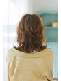 厚みのあるベースの表面にレイヤーをしっかり入れることで、パーマのボリューム感をコントロール上からうごきのあるウェーブをつけたのが新鮮でかわいいスタイル