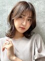 肩下、鎖骨上の長さに段入れて軽さを出し、巻いた時にくびれるシルエットになるようにカットしたミディアムスタイル。前髪もシースルーで軽い質感に。