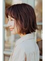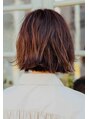 ぱっつんボブの清楚スタイル。ボブだけど重くなりすぎないように毛先を少し軽くし、顔周りを明るくするために前髪をシースルーにします。暖色系のカラーを入れることで顔周りや雰囲気が柔らかい印象になります。