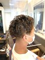 メンズ 波巻きパーマ刈り上げ ハイライトブリーチカラー