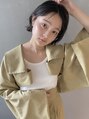 襟足ギリギリの長さの切りっぱなしボブ。短くてもシースルーな前髪はざっくりかきあげてパラパラと束感を出すのがお洒落ポイント。黒髪でもこなれた印象に。