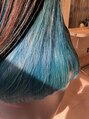 鮮やかなアクアブルー、ブリーチ必須です!他のお色も対応できますのでご相談下さい。