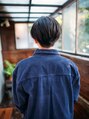 襟足は柔らかく刈り上げて、前下がりにパツっと切ったトレンドのメンズスタイルです。量感調節をしっかりすればスタイリングもとてもラクで、カジュアルにもフォーマルにも似合います。前髪にはアクセントでブリーチをオン!【新小岩】