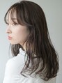 目にかかるぐらいの軽めのバングとローレイヤーの入ったロングスタイル。カラーは暗めのトーンのグレージュをくすませて、透明感が出るイルミナカラーを使用。