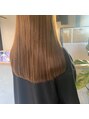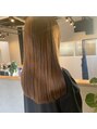毛先をぱつっと重ためにカットさせていだだきました。真っ直ぐストレートでもエッジの効いた印象になります。ウェッティな質感との相性も◎