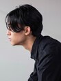 センターパートのカットベースにウェット系のスタイリング剤でヌーディ感を出したオトコの色気を感じさせるスタイル。