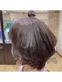ハチ上をフラットにさせ、チークラインにほどよいふくらみをもたせる事でダイヤモンドシルエットに。