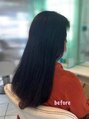 ロングスタイルからバッサリとカットしました。ストレートになりすぎないように縮毛矯正をしました。縮毛矯正をするとボリュームが出ずらいことがおおいですが、ふんわりとした仕上がりにしました。