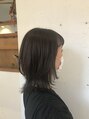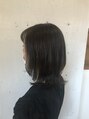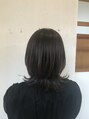 カットはミィディアムウルフで、レイヤーは少し前下がりに入っています。顔周りは口元位からサイドに繋いであります。カラーは、N.カラーのモノトーンとブルーアッシュの8トーンです。