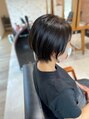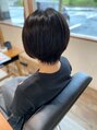 カットでくびれを作ってお手入れ簡単ショートstyleカラーは濃~い青でトーンダウンして、重くなりすぎないツヤ髪に髪質改善トリートメントで手触りもサラサラ