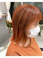 オレンジカラーで少し目立つカラーに!ブリーチなしでできるオレンジカラーが◎カットはレイヤーを入れて外ハネなカットに!【ブックマークをしてご提示下さい】