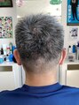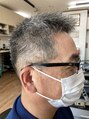 サイドバックと襟まわりは3mmのバリカンでスッキリ、フロントとトップはツンツンと立たない程度にチョップカットでナチュラルに仕上げセニングで毛量調整しました。