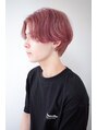 やや前下がりのセンターパートスタイル。刈り上げなしでナチュラルな優しい印象に。カラーは透明感のあるシアーピンクでおしゃれに色っぽく。