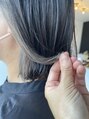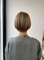グレーヘアでも細かいハイライトでベージュカラーに!くびれが綺麗なショートボブ