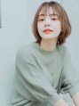 ボブの中にもレイヤーを少しいれ、動きのあるニュアンスに作りました。前髪にもシースルーを取り入れ、面の面積をより出してのスタイルになっています。カラーはベージュの色味にグレージュを入れ、透明感を出しました。