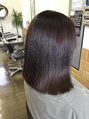 夏の紫外線等で髪の毛の艶がなく少し傷んだ髪も電子トリートメント+縮毛矯正でもとどうり! 艶も復活。