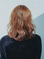 全体にゆるくウェーブをつけたミディアムボブのスタイルです。 根本から中間はゆるく、毛先にはしっかりと動きを出すことでコンパクトで動きのあるカールスタイルになっています。 バングは眉のラインで揃えてガーリーな印象に。