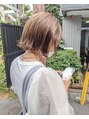 筋感弱めなハイライトで柔らかさと透明感たっぷりなラテベージュに◎まだまだ外ハネボブも人気です!Instagramでもスタイル更新中*是非ご覧ください!@zhu.ogi[藤沢/個室/髪質改善/ハイライト/ヘッドスパ/インナーカラー/ブリーチ/トリートメント/ヘアセット]