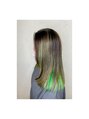 エアタッチのブリーチベースに表面はカラーで。バックのインナーは2色の緑色のカラートリートメントを♪