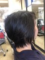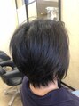 厚みを落とした、ショートレイヤー。顔まわり、えりあしを少し残す感じにして遊びをつけてあります。